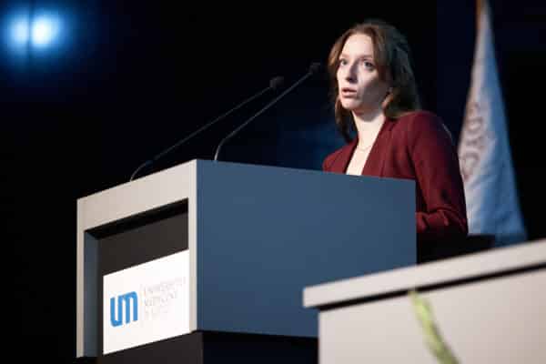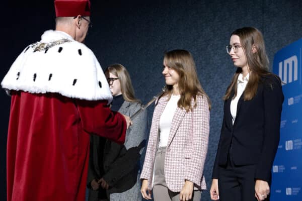 W swoim wystąpieniu Jego Magnificencja mówił o aktualnej sytuacji Uczelni, ale i planach na najbliższe lata. Przedstawił osiągnięcia Uniwersytetu w obszarze nauki, infrastruktury i badań klinicznych. W szczególnych słowach zwrócił się do studentów pierwszego roku: „Studia to czas intensywnej nauki, ale i samopoznania. Nie traćcie siebie w biegu po wyniki – uczcie się, ale też żyjcie. Bądźcie wolni, odważni, mądrzy, otwarci i empatyczni. W zawodzie, do którego Was przygotowujemy, najważniejszy zawsze będzie drugi człowiek!”
