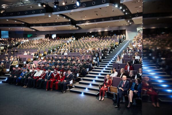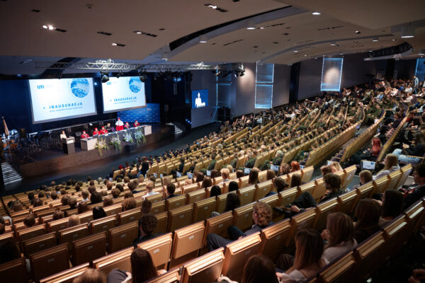 Tradycyjnie, w auli 1000, zgromadziły się Władze Uczelni, Senat Uniwersytetu Medycznego, zaproszeni goście, studenci, doktoranci oraz pracownicy.