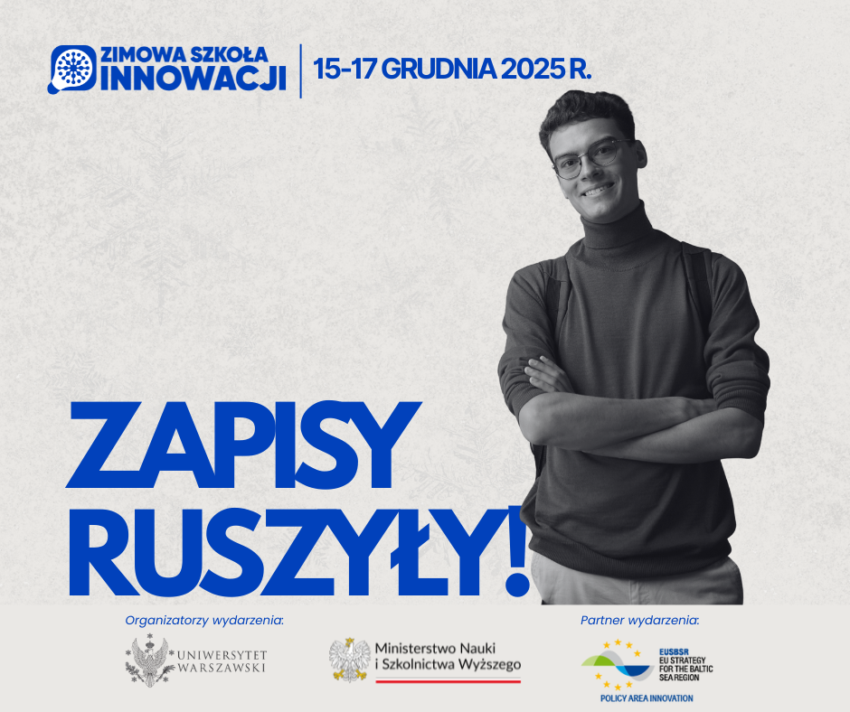 Więcej informacji o Zimowej Szkole Innowacji znajduje się pod adresem: https://szkolazimowa.szkolydoktorskie.uw.edu.pl/